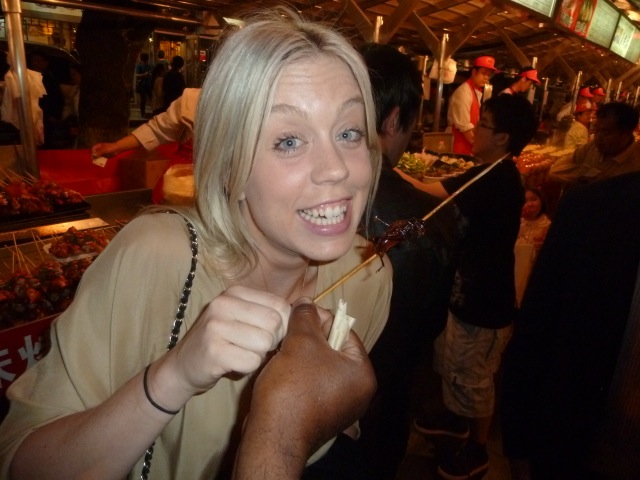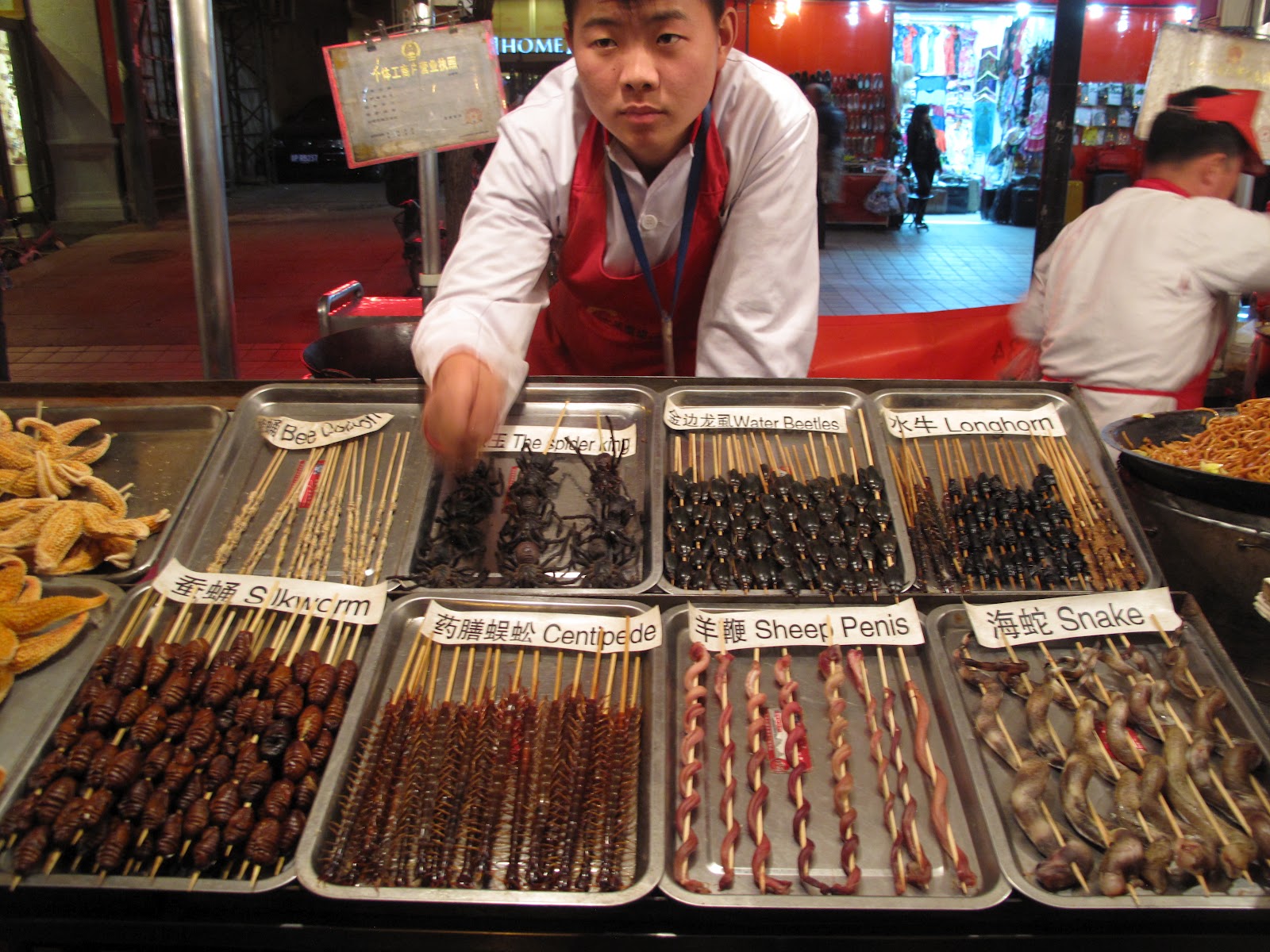 SNACK STREET: a very crowded street with Chinese delicacies, such as sheep penis, tarantula, stomach & silk worm cocoons. |