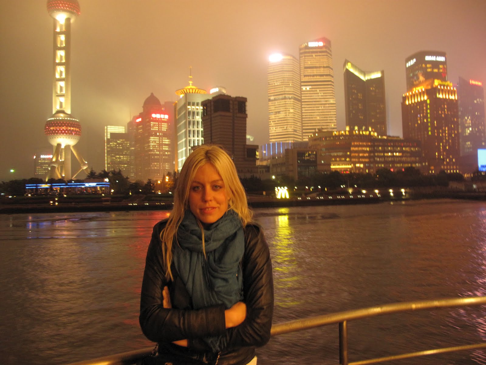 While Shanghai is known for being the well polished, sophisticated, financial epicenter of China, I think my favorite attraction was the epically dated, technicolor, Bund Site Seeing Tunnel - a pedestrian only tunnel that allows you to go under the river in a glass people mover, from the Pudong (where our hotel was) to Chen Yi Square: "Modern high technologies are applied in the decoration of the interior walls of the tunnel, providing the passengers with pictures, patterns and views about yellow sea stars, pink flowers, strange geometric figures, which are full of dynamic power and full of enchantment." It felt like quintessential China in a city that is very westernized. Needless to say, Day 2 started out like Day 1, with a little trip through the Site Seeing Tunnel, always pleasant, and then to M50 Artist District. To make a long story short, the rest of our day turned into a transportation nightmare, language barrier + taxi's + china traffic = hours of going the wrong way. We did however make it to the artist district which was very cool, a nice introduction to the Chinese contemporary art scene. After that we went spent some more time going the wrong direction in cabs & finally rendezvoused with our local friends to hit up the underground fake purse scene, which was quite exciting since there was a raid in the neighboring shop and we were locked down in the purse dungeon for quite some time. Eventually we made it to the Huangpua River Tour which was a delight on the overcast, rainy night - all sarcasm aside, after a long day on going nowhere it felt like a bit of the same (85 of the 90 minutes we were sitting on a boat looking at the dark banks of shanghai as most of the Chinese tourists were engaged in conversation never looking out of the window), when ALAS we made it to the Mecca of lights and Shanghai beauty, see pictures below.